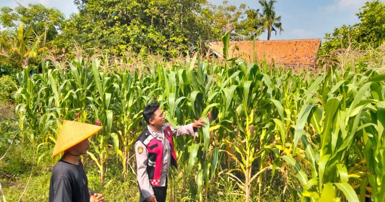 Polres Karawang - Polsek Batujaya Polres Karawang Polda Jabar, Anggota Polsek Batujaya Polres Karawang Polda Jabar Bripka Sholihin dan Unsur Masyarakat dan Pemerintah Desa Kutaampel Kecamatan Batujaya melaksanakan Monitoring dan Pengecekan Pasca Penanaman Jagung. Selasa (4/11/2025)