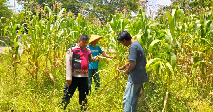 Anggota Polsek Batujaya melakukan Pengecekan Tanaman Jagung di Lahan LBS Desa Kutaampel