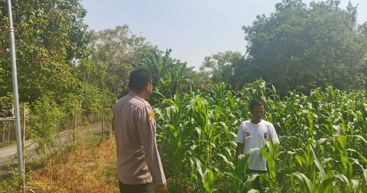 Polres Karawang - Polsek Batujaya Polres Karawang Polda Jabar, Anggota Polsek Batujaya Polres Karawang Polda Jabar Aipda Hengky Firmansyah dan Unsur Masyarakat dan Pemerintah Desa Kutaampel Kecamatan Batujaya melaksanakan Monitoring dan Pengecekan Pasca Penanaman Jagung. Minggu (19/10/2025)
