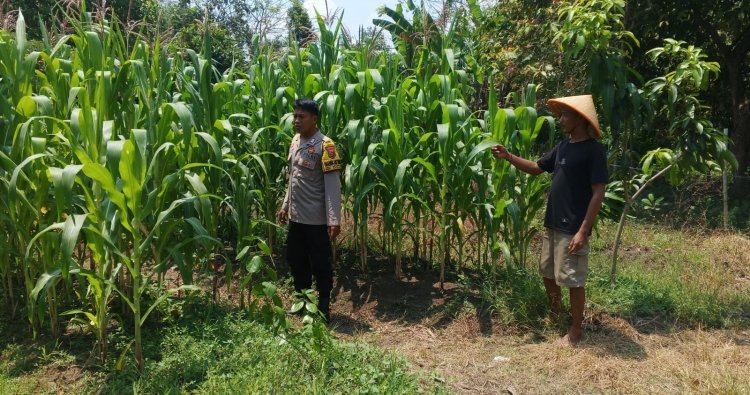 Polres Karawang - Polsek Batujaya Polres Karawang Polda Jabar, Anggota Polsek Batujaya Polres Karawang Polda Jabar Bripka Sigit Shinto Wibowo dan Unsur Masyarakat dan Pemerintah Desa Kutaampel Kecamatan Batujaya melaksanakan Monitoring dan Pengecekan Pasca Penanaman Jagung. Selasa (21/10/2025)