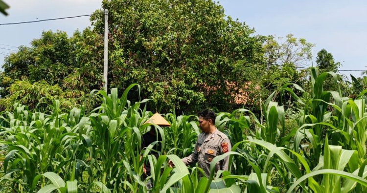Polres Karawang - Polsek Batujaya Polres Karawang Polda Jabar, Anggota Polsek Batujaya Polres Karawang Polda Jabar Bripka Febri Dwi Rahmanto dan Unsur Masyarakat dan Pemerintah Desa Kutaampel Kecamatan Batujaya melaksanakan Monitoring dan Penyiraman Air Pasca Penanaman Jagung. Rabu (8/10/2025)