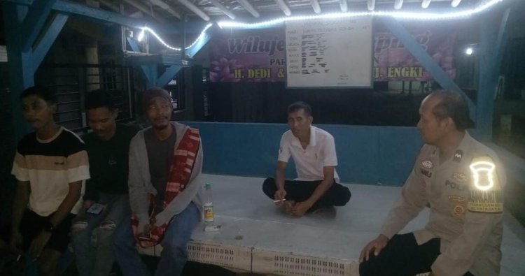 Polres Karawang Polda Jabar, - Polsek Tirtajaya Polres Karawang Polda Jabar, Anggota Polsek Tirtajaya Aipda Adang Suhaya ajak Ngawangkong Masyarakat di Pos Kamling Presisi Dusun Krajan Rt.009/003 Desa Bolang Kecamatan Tirtajaya Kabupaten Karawang serta memberikan himbauan Kamtibmas. Selasa (7/10/2025).