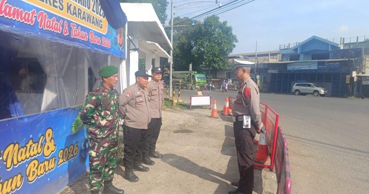 Selanjutnya pengecekan kesiapan anggota piket pospam Dawuan dalam rangka Pam Natal 2025 dan Tahun Baru 2026 polres Karawang di Pospam Dawuan Cikampek.