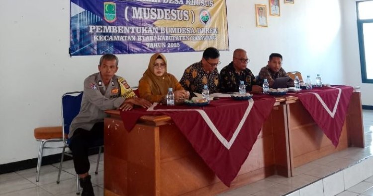 Polres Karawang - Bhabinkamtibmas Polsek Klari, Polres Karawang, Aiptu Triyono menghadiri kegiatan pembentukan Badan Usaha Milik Desa (BUMDes) yang digelar di Aula Kantor Desa Duren Kecamatan Klari Kabupaten Karawang, Kamis (09/10/2025).