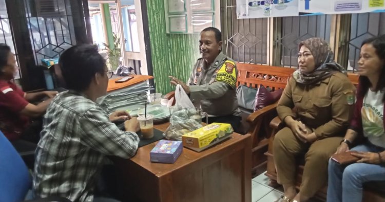 Polres Karawang - Bhabinkamtibmas Polsek Telukjambe Timur, Aiptu M. Ali melaksanakan giat sambang humanis ke perangkat desa di Kantor Desa Sirnabaya, Telukjambe Timur, Karawang.