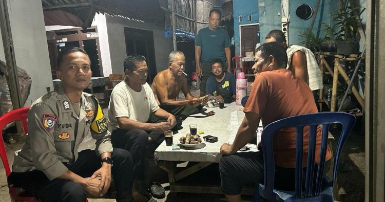 Polres Karawang - Bhabinkamtibmas Polsek Telukjambe Timur, Bripka Yuda Bakti Santoso melaksanakan kegiatan ngawangkong atau sambang dialogis dengan warga di wilayah binaannya.