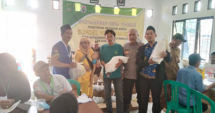 Polres Karawang - Bhabinkamtibmas Desa Kutagandok Kecamatan Kutawaluya Aipda Damo Sulaeman melaksanakan kegiatan monitoring dan pengamanan proses pendistribusian bantuan beras dari pemerintah kepada masyarakat penerima manfaat, Senin (01/12/2025).