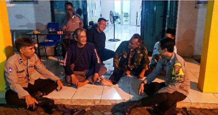 Dalam ngawangkong tersebut anggota Bhabinkamtibmas memberikan himbauan kamtibmas kepada petugas ronda dalam mengantisipasi gangguan kamtibmas