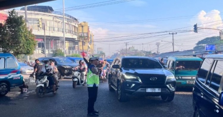 Antisipasi kemacetan dan lakalantas di Bawah Fly Over Cikampek, unit lantas Polsek Cikampek rutin giat gatur.