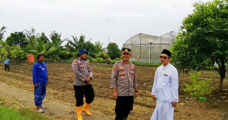 Polres Karawang - Kapolsek Rengasdengklok Polres Karawang Kompol H.Edi Karyadi S.H didampingi Kasium Aipda H.Andriyanto S.H dan Pimpinan Ponpes Nurussalam KH.Ujang Badrudin. Melaksanakan giat monitoring Persiapan Penanaman Jagung pada lahan tanah darat di wilayah hukum Polsek Rengasdengklok Polres Karawang