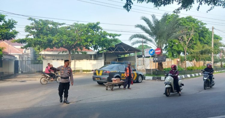 Polres Karawang - Kapolsek Rengasdengklok Polres Karawang Melaksanakan pengaturan lalu lintas pagi di beberapa titik rawan kemacetan di wilayah Kec.Rengasdengklok Kab.Karawang