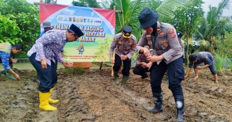 Polres Karawang - Polres Karawang melalui Polsek Rengasdengklok melaksanakan penanaman jagung serentak sebagai bentuk dukungan terhadap Program Ketahanan Pangan Nasional.