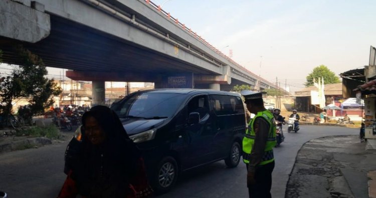 Połsek Cikampek melalui personilnya melakukan giat pengaturan lalulintas