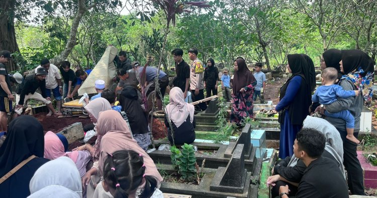 Personil Polsek Cikampek Bhabinkamtibmas Bripka Ajis hadiri pemakaman Jenazah warg Dusun Jati Indah An. Alm. Tita Kartika Desa. Cikampek Kota Kec. Cikampek Kab. Karawang.