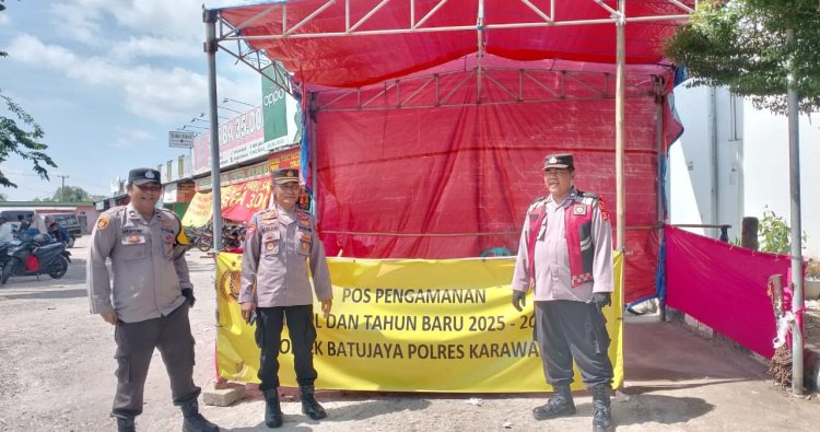Termasuk personel kepolisian dari sektor Batujaya Polres Karawang yang melaksanakan Giat PAM Nataru Lodaya 2025/2026 di Pos PAM Batujaya. Minggu (28/12/2025)