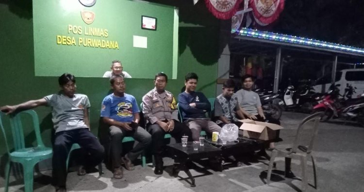 Polres Karawang - Anggota Polsek Telukjambe Timur, Aiptu Mamat Ruhimat ngawangkong di Pos Linmas Desa Purwadana, Kecamatan Telukjambe Timur, Kabupaten Karawang, Minggu (19/10/2025) malam.