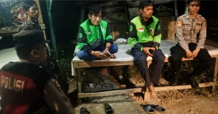 Dalam Kegiatan Patroli malam, selain menyisir tempat - tempat rawan tindak kriminalitas, anggota juga menyambangi masyarakat tukang Ojek Online yang Sedang mangkal didusun warudoyong Desa Rengasdengklok Selatan Kec.Rengasdengklok