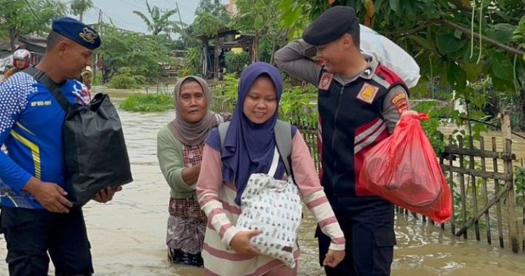Polres Karawang - Kepolisian Resor (Polres) Karawang bersama unsur TNI, BPBD, dan seluruh relawan kemanusiaan bergerak cepat membantu masyarakat yang terdampak bencana banjir di Desa Karangligar, Kabupaten Karawang, Minggu (18/1/2026).
