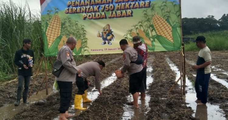 Dikatakan juga bahwa pelaksanaan penanaman jagung dilokasi tersebut dilaksanakan secara Serentak yang di laksanakan oleh Polda Jabar dan Jajaran sebagai dukungan Program RI 1 terkait Ketahanan Pangan atau Swasembada Pangan di Wilayah Polsek Banyusari Polres Karawang. Sambungnya