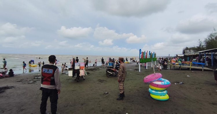 Polres Karawang - Polsek Batujaya Polres Karawang Polda Jabar, Kapolsek Batujaya Polres Karawang Polda Jabar Akp H. Ruslani Pimpin patroli dan pengawasan di tempat wisata Pantai Pulau Putri Cikeong di Dusun Karangmulya RT 013/004 Desa Segarjaya Kecamatan Batujaya Karawang. Kamis (1/1/2026).