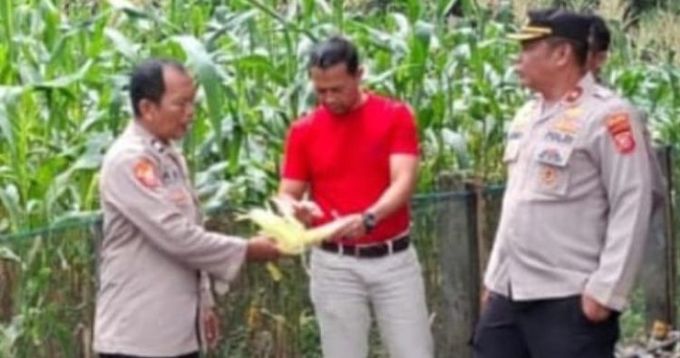 Polres Karawang - Dalam rangka mendukung program ketahanan pangan, Kapolsek Jatisari, Polres Karawang, Kompol H Bambang Sumitro.SH., MM., CHRA bersama anggota melaksanakan kegiatan cek hasil tanaman jagung di lahan pertanian milik Polsek Jatisari, Minggu (16/11/2025).