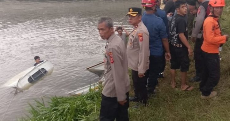 Sekitar pukul 18.15 WIB, kendaraan yang terlibat kecelakaan berhasil dievakuasi dari saluran irigasi dan diamankan sebagai barang bukti guna kepentingan penyelidikan.