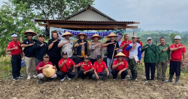 Polres Karawang - Kapolsek Klari, Kompol H Andryan Nugraha SH memimpin kegiatan Launching Ketahanan Pangan Jagung Hibrida yang dilaksanakan di Desa Karang Anyar, Kecamatan Klari, Karawang pada hari Kamis (23/10/2025).