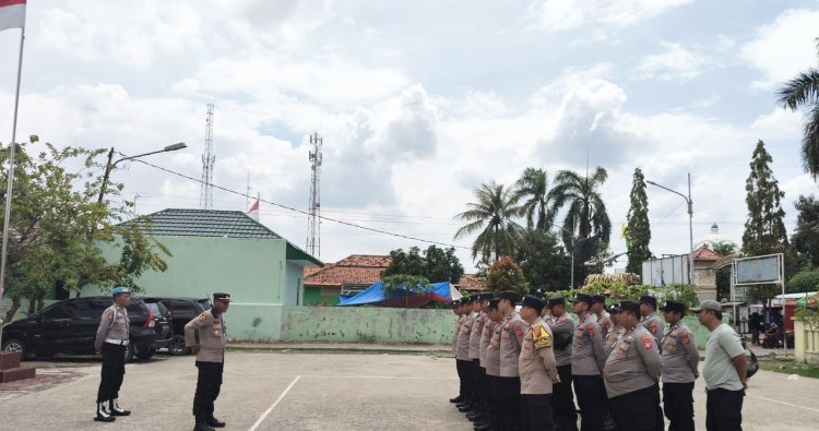 KARAWANG - Polres Karawang Polda Jabar, Dalam rangka persiapan pengamanan Pilkades Desa Balongsari Kecamatan Rawamerta, Kapolsek Rawamerta AKP H. Ulan Sonjaya, SH memimpin apel di Depan Mapolsek Rawamerta, Sabtu (27/12/2025).