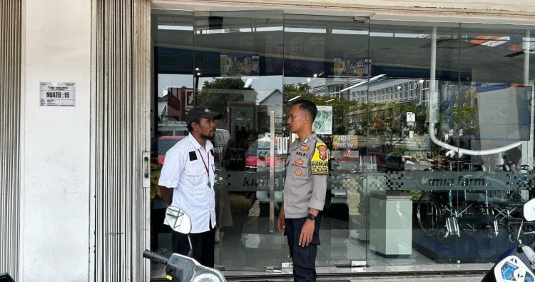 Polres Karawang - Anggota Polsek Telukjambe Timur, Bripka Yuda Bakti Santoso melaksanakan patroli prekat ke halaman parkir Kimia Farma Ruko Grenvilage Desa Sukaluyu, Kecamatan Telukjambe Timur, Karawang, Jumat (10/10/2025).