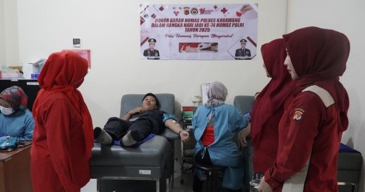 Polres Karawang - Dalam rangka memperingati Hari Ulang Tahun (HUT) Humas Polri ke-74, Polres Karawang Polda Jawa Barat, melaksanakan kegiatan bakti sosial berupa donor darah yang berlangsung di Kantor PMI Kab Karawang. Rabu (22/10).