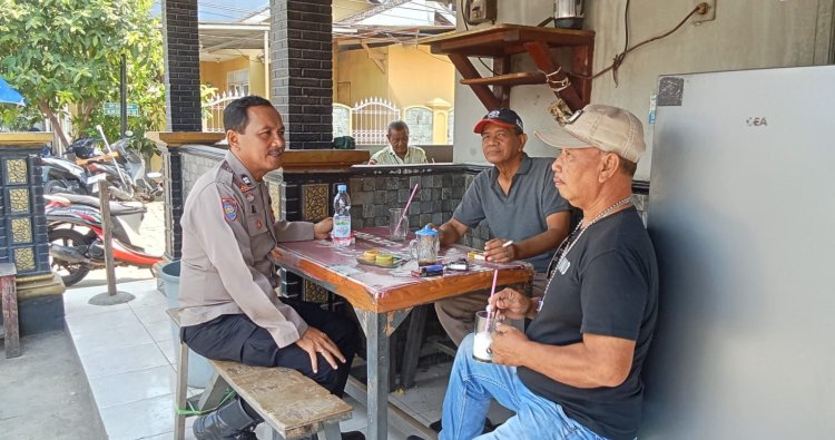 Polres Karawang - Bhabinkamtibmas Polsek Telukjambe Timur, Aiptu M. Ali melaksanakan giat sambang humanis ke warga di Warung Kopi 24 Jam yang berada di Dusun Kraja Desa Sirnabaya, Telukjambe Timur, Karawang.