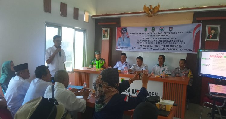 KARAWANG - Dalam gelaran Musyawarah Perencanaan Pembangunan (Musrenbang) Rencana Kerja Pemerintah Daerah (RKPD) Kecamatan Batujaya tahun 2026, Bhabinkamtibmas Polsek Batujaya, Bripka Ahmad Sanjaya, hadir mewakili Kapolsek Batujaya di Aula Kantor Desa Baturaden, Rabu (1/10/2025). Kehadirannya bukan sekadar formalitas, melainkan sebuah upaya proaktif untuk menyatukan langkah dalam menjaga stabilitas keamanan di wilayah hukum Polsek Batujaya, Polres Karawang.