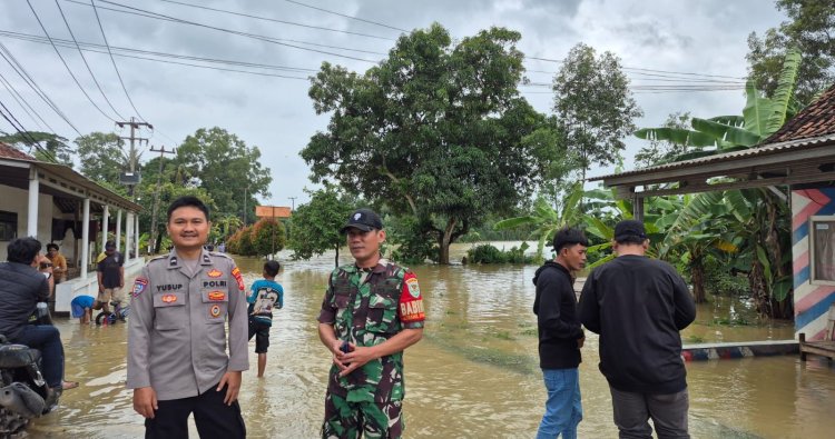 Pastikan warga terdampak banjir dalam keadaan aman dan kondusif Polsek Cikampek melalui Bhabinkantibmas Aipda Yusup melaksanakan
