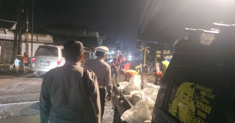 Patroli Malam Polsek Cikampek Pantau Situasi Kantibmas di Perlintasan Kereta Api Cikampek Cegah C3 dan Premanisme