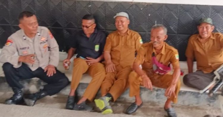 Polres Karawang - Berlangsung di Kantor Desa Mekarsari, Kecamatan Jatisari. Bhabinkamtibmas Polsek Jatisari, Polres Karawang, Aiptu Asep Solihin sambang perangkat desa pada siang hari sambil ngobrol santai atau ngawangkong.