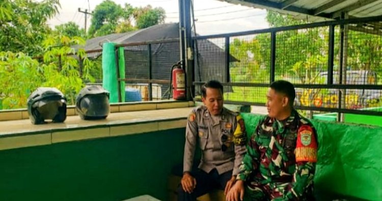Dalam kesempatan itu Bhabinkamtibmas bersama anggota bhabinsa melakukan perbincangan serta membahas situasi dan kondis kamtibmas di wilayah binaan