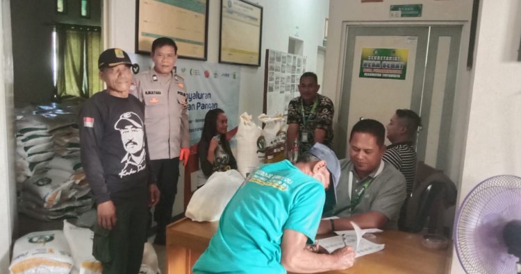 Bhabinkamtibmas dan Babinsa , Linmas serta kepala Desa monitoring giat penyaluran bantuan pangan berupa beras 20 kg dan minyak sayur 4 liter dari Kemensos kepada warga penerima manfaat sebanyak 371 KPM, untuk Bulan Oktober dan November 2025 .