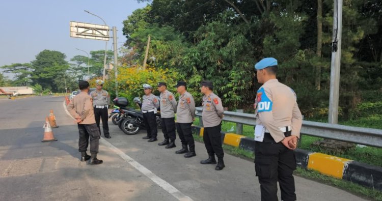 Personil Polsek Cikampek Apel Kesiapan dan Pengamanan Pemberangkatan Serikat Pekerja Kabupaten Karawang ke Bekasi