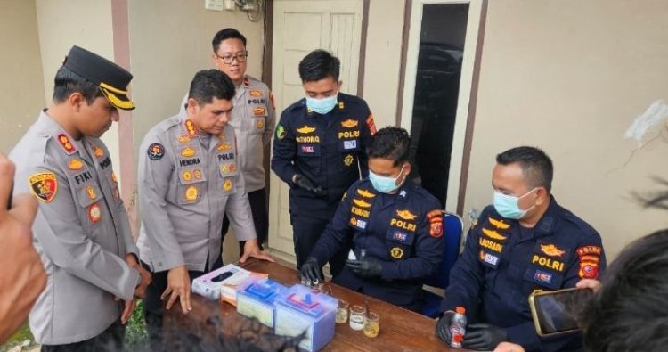 Polda Jawa Barat dan Biddokes Polda Jawa Barat melakukan pengecekan kandungan makanan guna memastikan kelayakan dan keamanan pangan yang akan dikonsumsi oleh masyarakat terdampak banjir di wilayah Kabupaten Karawang. Rabu (21/1/2026).