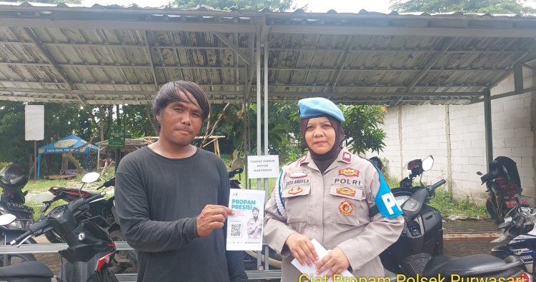 Polsek Purwasari Sosialisasi QR Barcode Propam Mabes Polri ke Warga Secara Masif