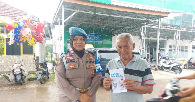 Personil Polsek Purwasari langsung ke warga memberikan informasi pelayanan pengaduan QR Barcode Propam Mabes Polri.