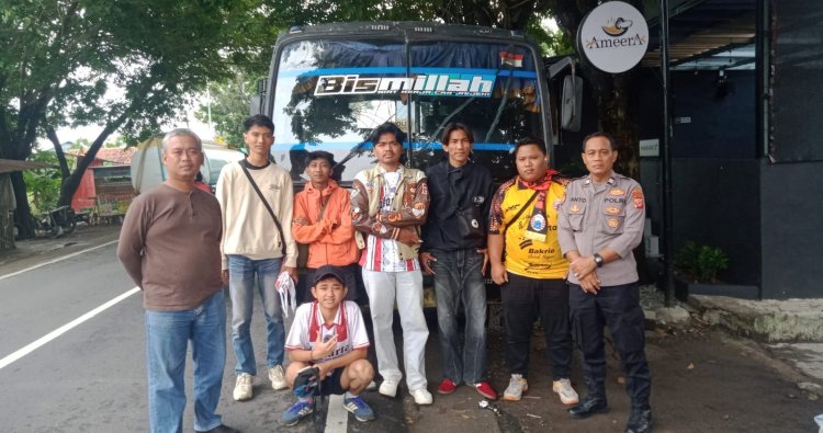 Polres Karawang - Personel Polsek Rengasdengklok Polres Karawang melaksanakan pemantauan dan pelayanan pengamanan keberangkatan suporter The Jak yang akan menyaksikan Laga pertandingan Persija Jakarta melawan Persijap Jepara di Stadion Gelora Bung Karno (GBK)
