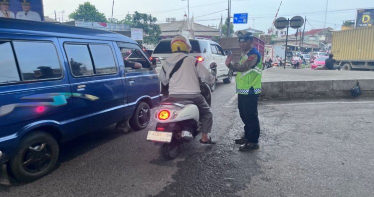 Guna mencegah kemacetan dan Lakalantas di Bawah Fly Over Cikampek , Polsek Cikampek melalui personil Unit Lantas Polsek Cikampek Iptu Tatang bersama Bripka Ajis gelar kegiatan pengaturan lalulintas.