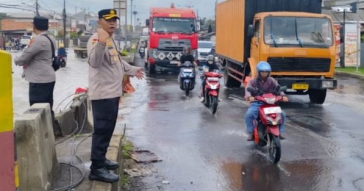 Polres Karawang - Polsek Klari Polres Karawang respon cepat lakukan pengamanan dan pengaturan arus lalu lintas di jalan raya Klari kosambi yang terdampak banjir pasca hujan deras. Genangan air yang cukup tinggi menyebabkan laju kendaraan roda dua maupun roda empat terhambat, sehingga diperlukan penanganan cepat untuk mengurai arus lalu lintas.