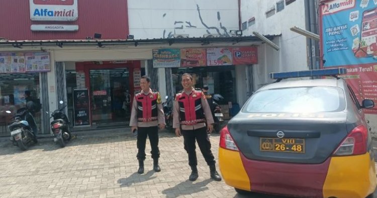 Polres Karawang - Guna menjaga situasi kamtibmas tetap aman dan kondusif, personel Unit Samapta Polsek Klari Polres Karawang Aiptu Eddy Junaedi bersama Aipda Satria BR melaksanakan patroli siang dengan menyambangi salah satu minimarket Alfamidi yang berada di Desa Anggadita, Kecamatan Klari, Kabupaten Karawang, Jumat (31/10/2025).