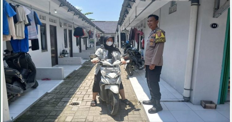 Polres Karawang - Pastikan imbauan kamtibmas tersampaikan, Bhabinkamtibmas Polsek Telukjambe Timur Aiptu Diayanto sambangi penghuni kontrakan milik Hajah Marini, dalam rangka meningkatkan Harkamtibmas.