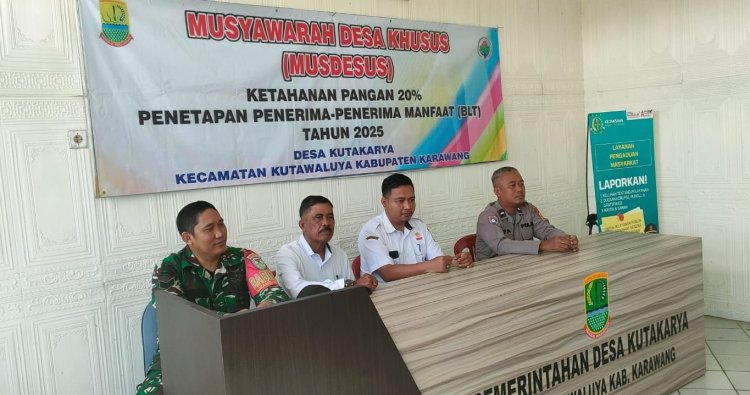 Polres Karawang - Bhabinkamtibmas Polsek Rengasdengklok Polres Karawang menghadiri kegiatan rapat Minggon rutin Desa Kutakarya Kec.Kutawaluya Kab.Karawang, Rabu (17/12/2025)