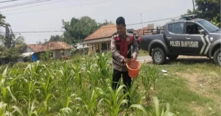 Polres Karawang - Sinergitas Polri dalam hal ini Polsek Banyusari, melaksanakan penyiraman pohon jagung yang di selenggarakan di Desa Gempol Kec Banyusari Kab Karawang. Minggu, 26 Oktober 2025