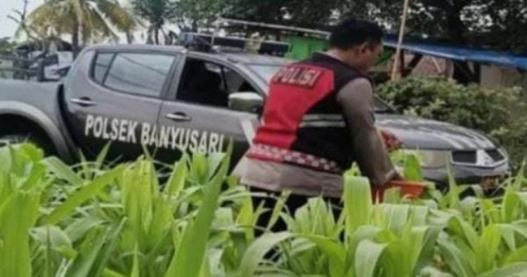 Polres Karawang - Sinergitas Polri dalam hal ini Polsek Banyusari, melaksanakan penyiraman pohon jagung yang di selenggarakan di Desa Gempol Kec Banyusari Kab Karawang. Minggu, 09 November 2025