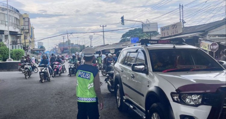 Unit Lantas Polsek Cikampek Gatur Sore Cegah Kemacetan di Bawah Fly Over Cikampek